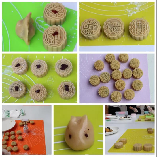 这次活动制作的是广式月饼,首先由指导老师给大家分发制作材料与工具,按照老师的指导,大家开始分工制作,揉面、压皮、包馅、按压,最后放进各种花纹的模具之中定型,每个步骤有条不紊,大家在制作过程中有说有笑,现场的气氛十分活跃,欢声笑语乐不停。
